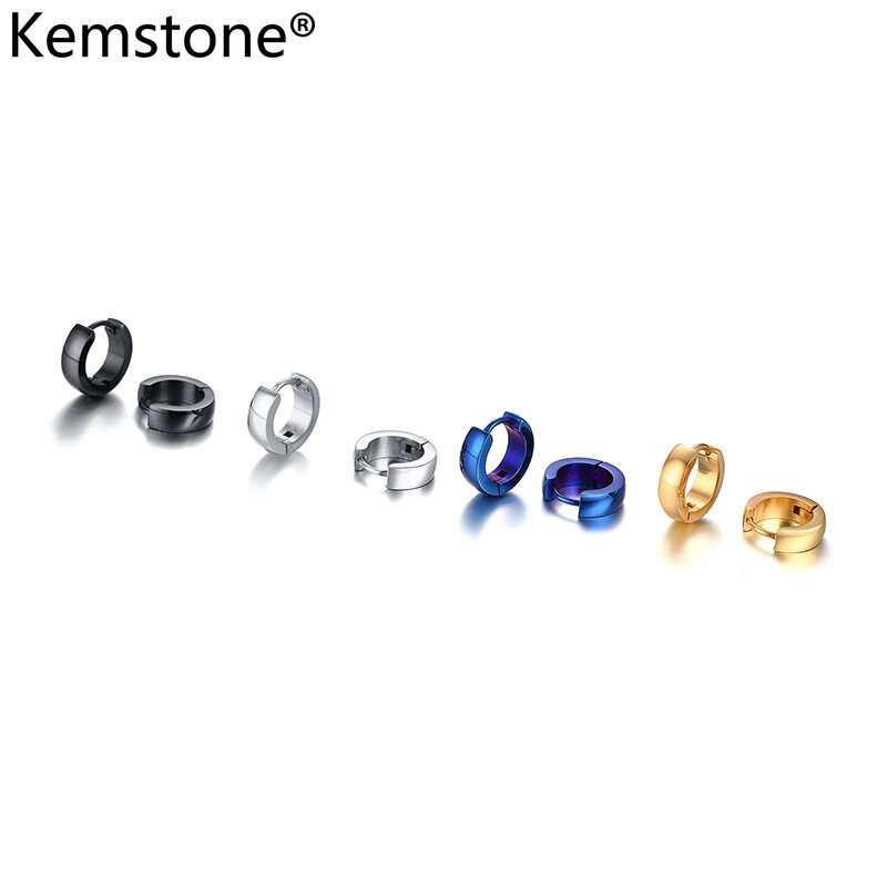 Kemstone Simple 4MM Stainless Steel Silver/Gold/Blue/Black Small Hoop Earrings for Men Women