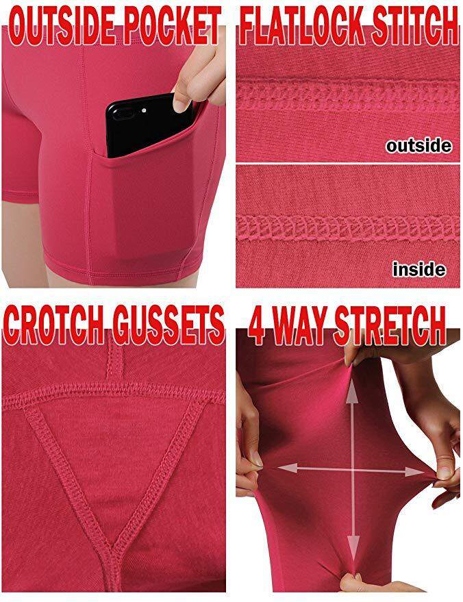 HIKAYA Women Sports short, High waist yoga pants, running compression shorts with side pockets