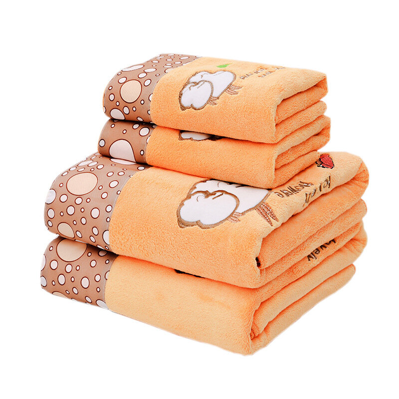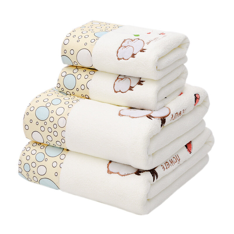 Towel Bath Towel 2 Pcs/Set Women's Summer Household Thin Quick-drying Absorbent Cartoon Cute Ultra-thin Couple Bath Wrap