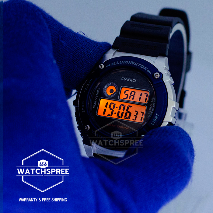 [Watchspree] Casio Digital Men's Black Rubber Strap Watch W216H-2A W-216H-2A