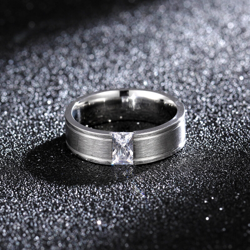 AVECON 【Support Engrave】AVECON 6mm Men's Diamond Titanium Silver Ring Size 6-12