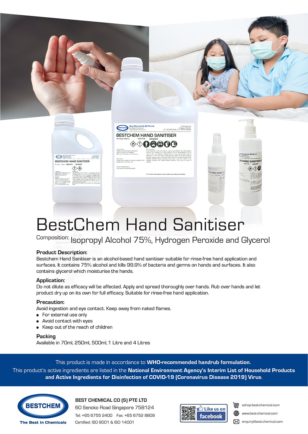 BestChem Hand Sanitiser (Alcohol Based) | 70ml/250ml/500ml/1L/4L