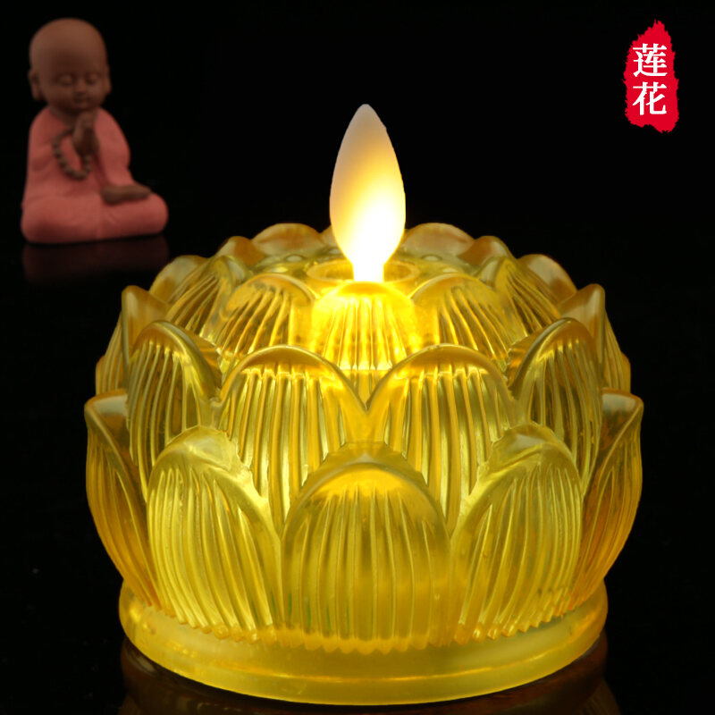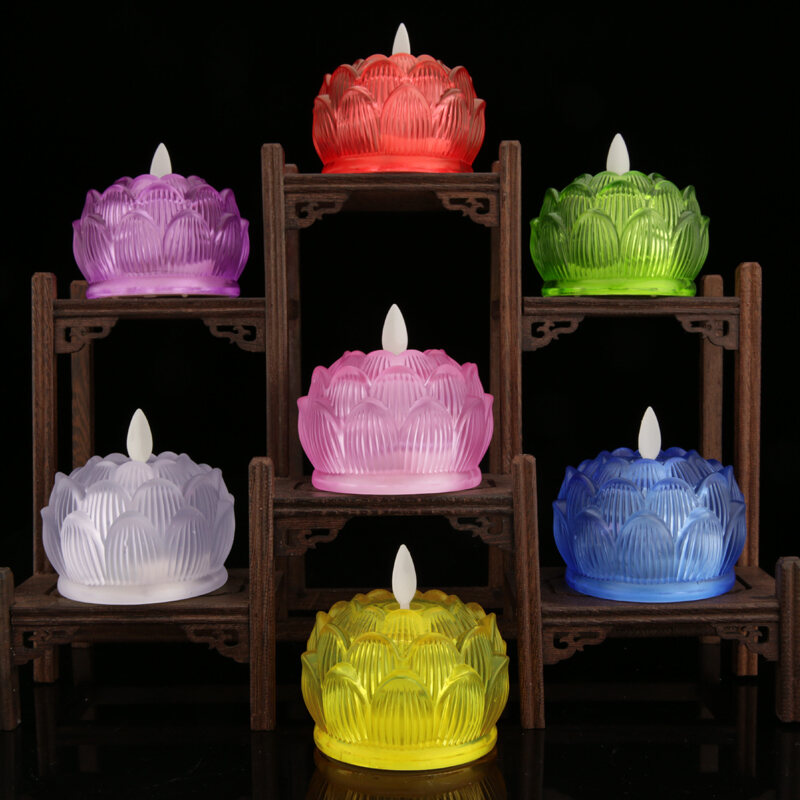 Shanyang Colorful Glass Lotus Lamp Buddha Buddha Lamp Buddha Lamp Lamp Holder Household Buddha Lamp Electronic Candle Holder