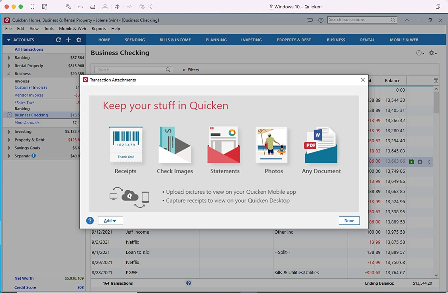 • Access Quicken on multiple devices and on the go with a free web and mobile app