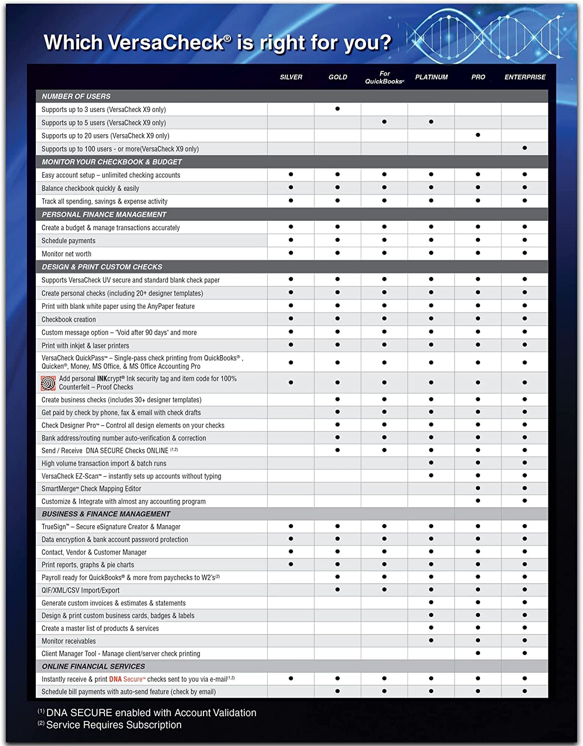 Includes VersaCheck Software Download, License for 5 Users, and 165 Print Validation codes. Additional print codes included FREE in VersaCheck Check Paper packaging.