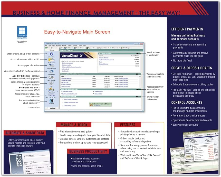 Instantly Create & Print Secure Checks & Drafts for Business & Personal Accounts. Works with Inkjet and Laser Printers. Compatible with Windows 11, 10, 8.x, 7